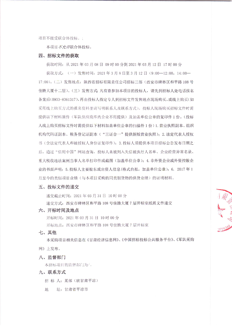 某部(驻甘肃平凉)训练器材集中采购项目(二次)