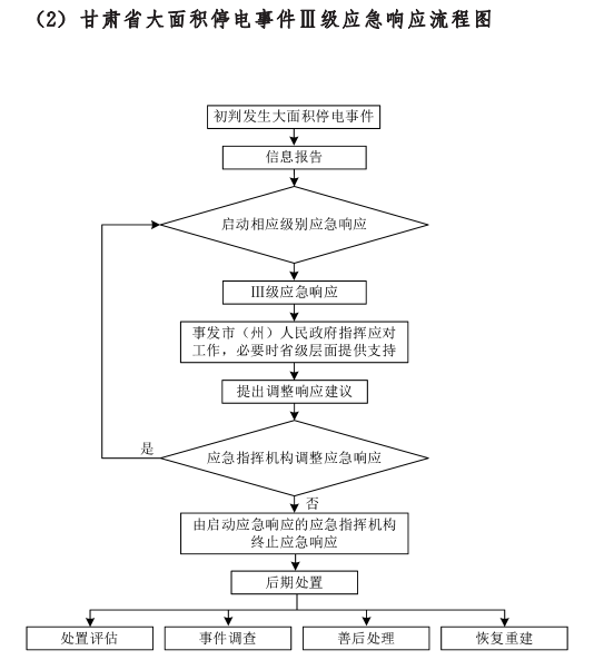 国家能源局甘肃监管办:负责配合开展大面积停电事件应急处置工作;配合做好新闻宣传工作;接到大面积停电事件报告后,立即核实有关情况并向国家能源局报告,同时通报事发地县级以上地方人民政府。