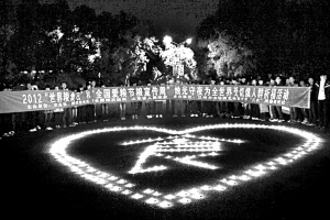 中国甘肃网-科技鑫报讯10月16日,2012“世界粮食日”节粮万人签名活动及烛光守夜祈福活动在西北师范大学举行。全校数千名师生参加了此次活动。