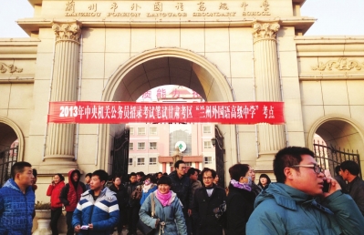 下午4时40分,在市外国语高级中学考点外,来自兰大的小黄同学告诉记者,自己报考的是兰州铁路公安局的一个职位,该职位预招录1人。不过通过资格审查的报考者共有475人。可是小黄显得很淡定地说,和报考中央等一些热门职位比起来,自己报的这个职位并不算最激烈的。小黄介绍说,自己家在农村,爸爸妈妈都很希望自己今年能考上公务员,有个“铁饭碗”,工作起来既稳定又体面。(记者朱浩源)
