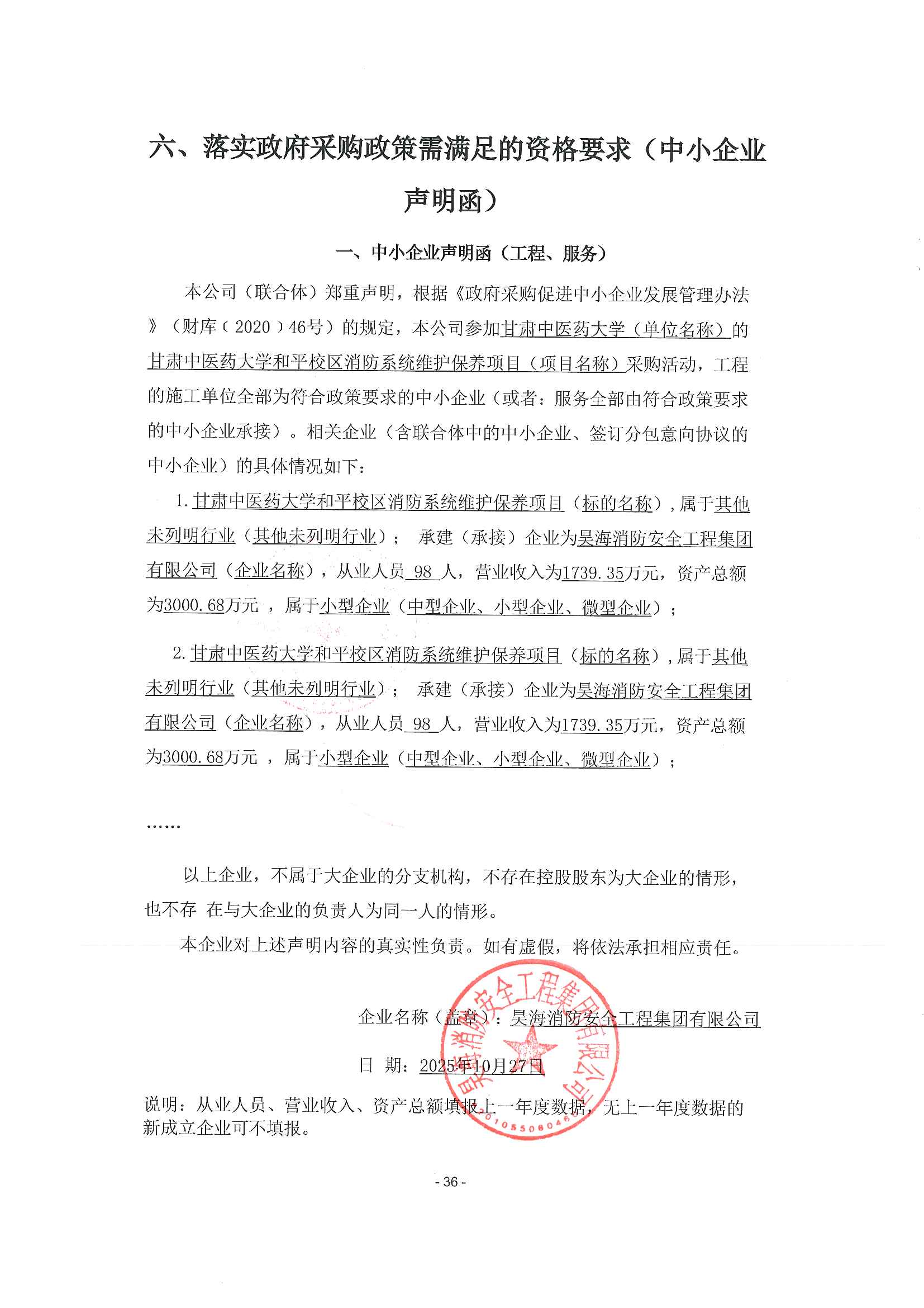 兰州诚信招标代理有限公司受甘肃中医药大学的委托,对甘肃中医药大学和平校区消防系统维护保养项目以竞争性磋商的方式进行采购,磋商小组于2025年10月27日确定成交结果,现将结果公布如下: