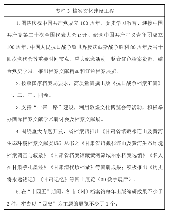 日前,省委办公厅、省政府办公厅印发《“十四五”甘肃省档案事业发展规划》,全文如下。