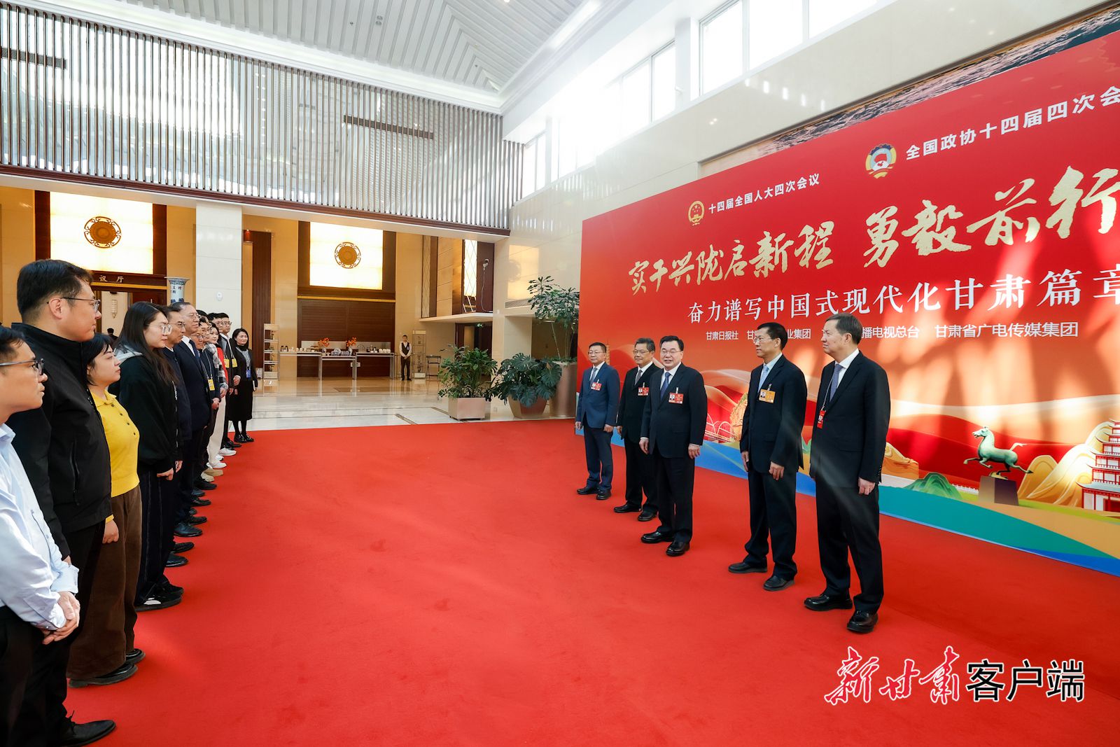 全国两会期间,省委书记、省人大常委会主任胡昌升,省委副书记、省长任振鹤在甘肃代表团驻地看望了报道全国两会的中央媒体和省属主要媒体新闻工作者。(新甘肃·甘肃日报记者孟捷)