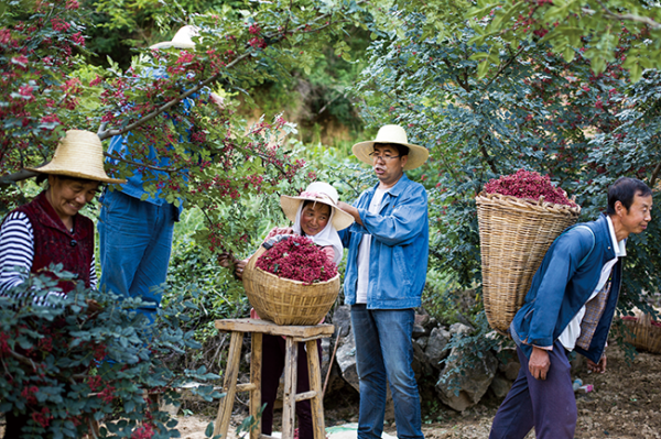张志强(右二)与村民一同采摘花椒