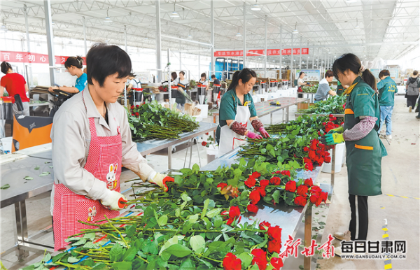 兰州新区现代农业投资集团以兴花富民为目标,坚持科技进步,优化产业结构,引领花卉产业持续发展。图为7月25日,员工对玫瑰切花分拣包装。 新甘肃·甘肃日报记者 曹剑南