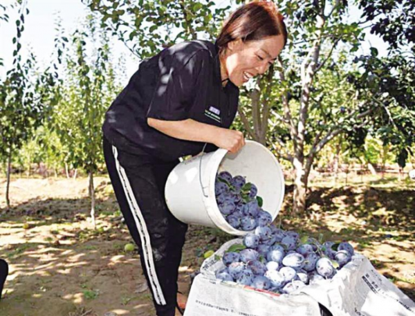 新城镇青石台村村民喜上“梅”梢。大西梅、小西梅个顶个的胖乎乎,压弯了枝头。