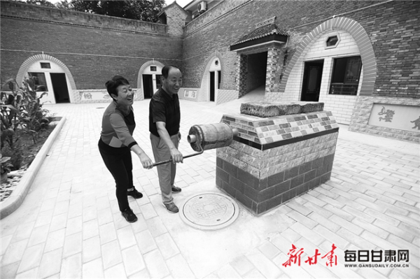 今年60多岁的郭凤福和老伴王爱珍都钟爱民俗文化,剪纸、书法等是老两口的最爱,老两口将庆阳剪纸和农耕文化、民俗故事结合起来,不仅雕琢在了地坑院的院墙上,他们计划还要在地坑院的窑洞里陈设乡村娶亲、农事丰收、耍社火等陇东民俗文化场景。
