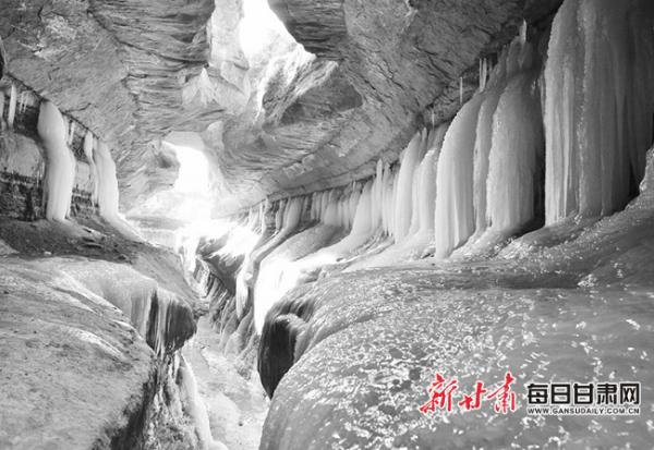黑老锅冰窟位于西峰区显胜乡毛寺村,因其周围岩石呈黑色,经过泉水冲刷后形成“锅”的形状而得名。这里地貌奇异,两边山势呈峡谷状,到了冬季,景区地表水从冰窟崖石汇流而下,形成造型独特的天然冰柱群,鬼斧神工令人叫绝。整个景观如同一座地下冰宫、天然冰库、黄土冰窖,是黄土高坡上一道罕见的地貌奇观。