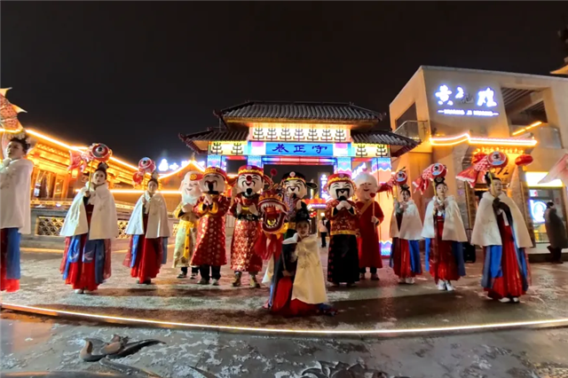 夜幕降临,河西都会的万盏华灯亮起,“天马踏灯”的光影盛宴如梦似幻,罗什寺街区的千灯星河下,“来财BOYS”巡游送福,篝火晚会上的锅庄舞点燃夜色,让陌生的笑容在火光中交汇。这人间烟火,正是最动人的诗韵。