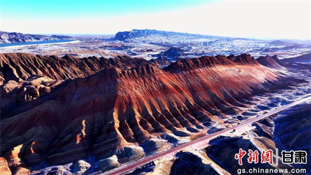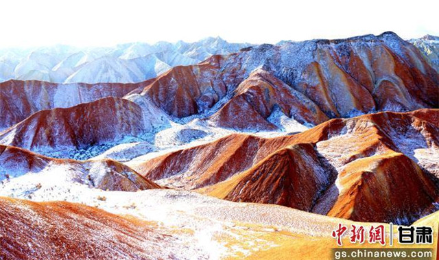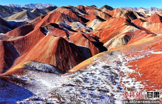 图为七彩丹霞在白雪的点缀下显现出动人的风景。临泽县融媒体中心供图