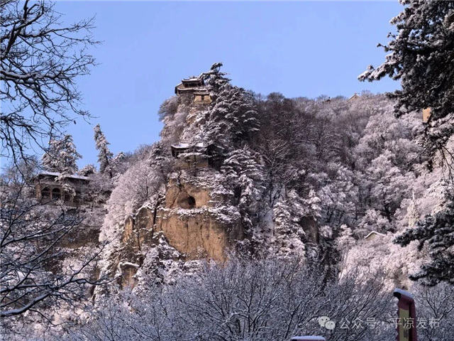 平凉今冬的第二场雪,下得毫无保留。它铺天盖地,轰轰烈烈,从旧岁一直下到了新年,覆盖了两个年份的边界。雪霁云开,崆峒山便显出了它的真容,一位卸去所有华饰的美人,眉如墨黛,眸若星辰,披一身白色大氅,静默地伫立在无垠的光阴里。这时你才懂得,浓烈惊艳是一种美,而这般洗净铅华的淡妆素裹,是另一种绝色,直抵人心。