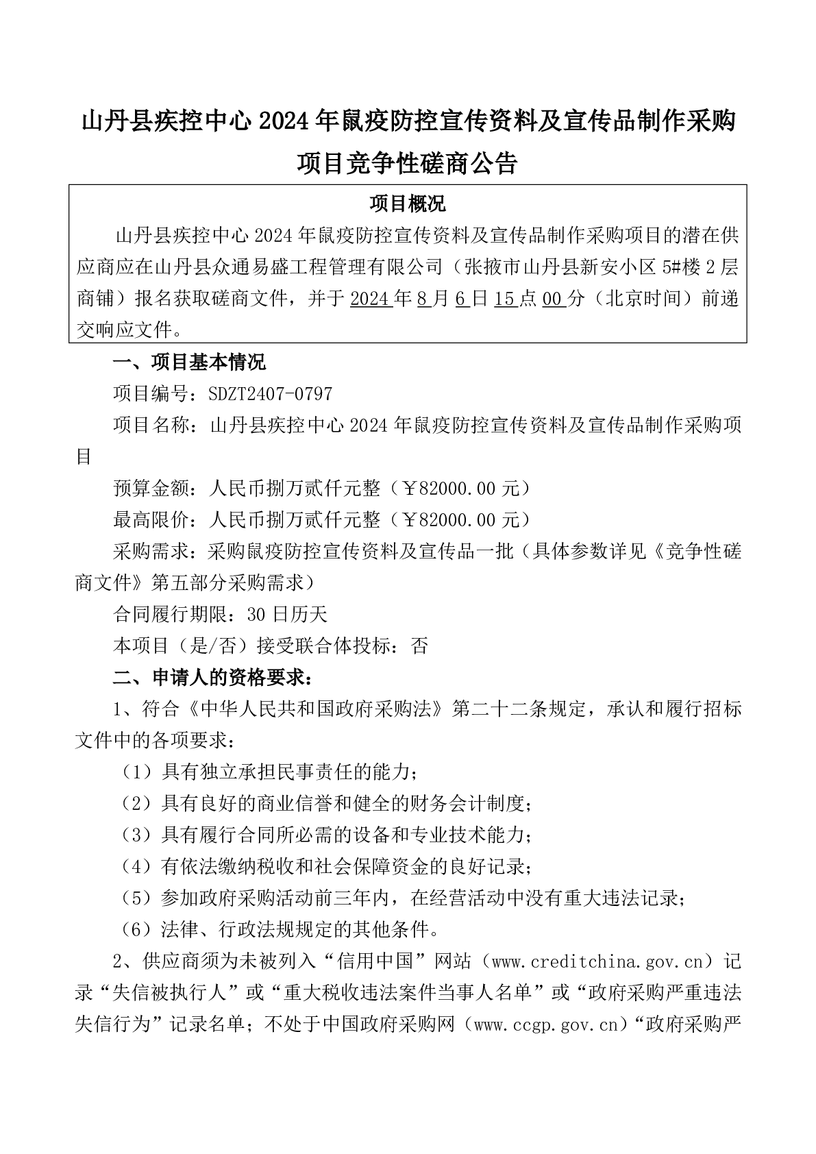 山丹县疾控中心2024年鼠疫防控宣传资料及宣传品制作采购项目竞争性磋商公告
