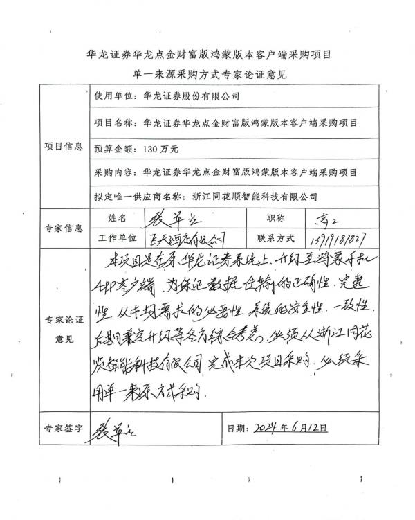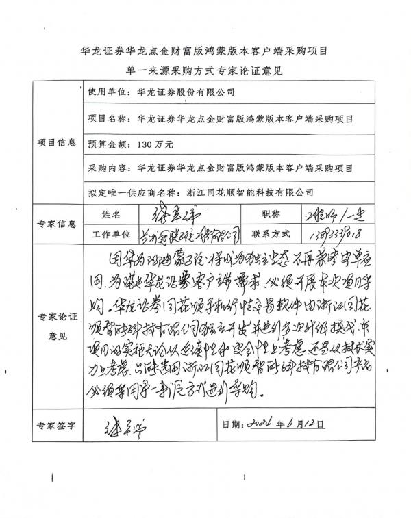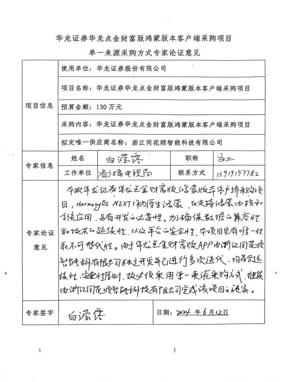 华龙证券华龙点金财富版鸿蒙版本客户端采购项目单一来源公示