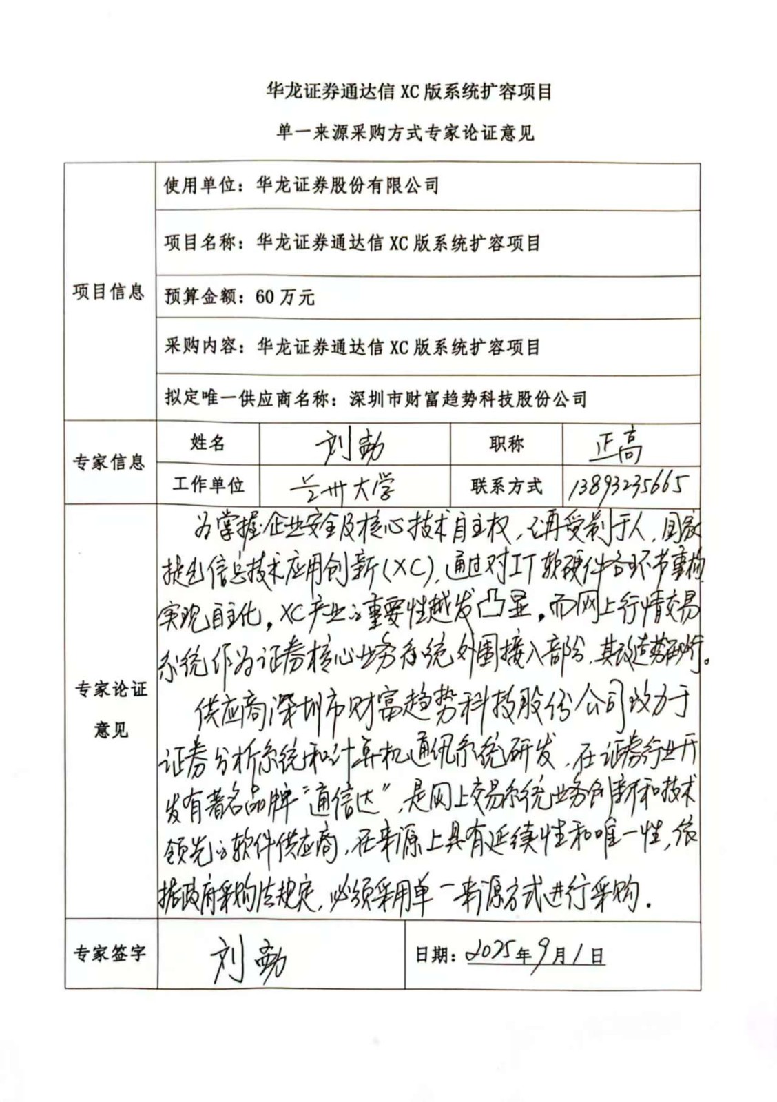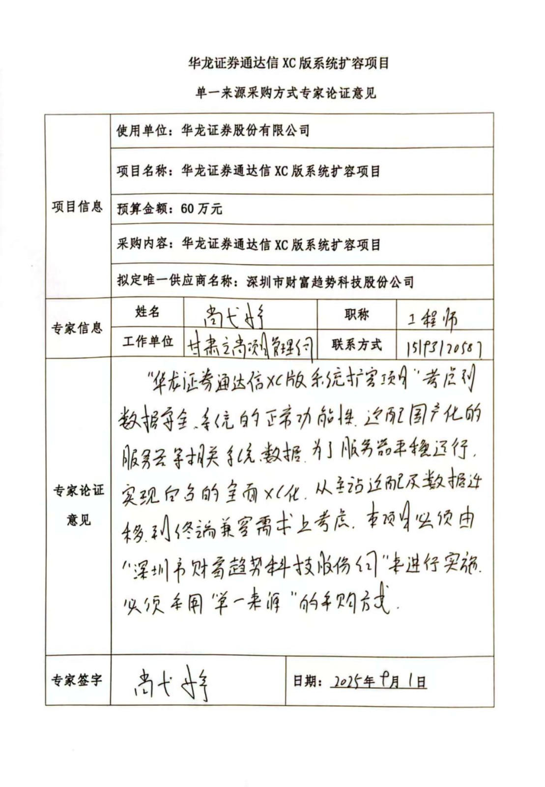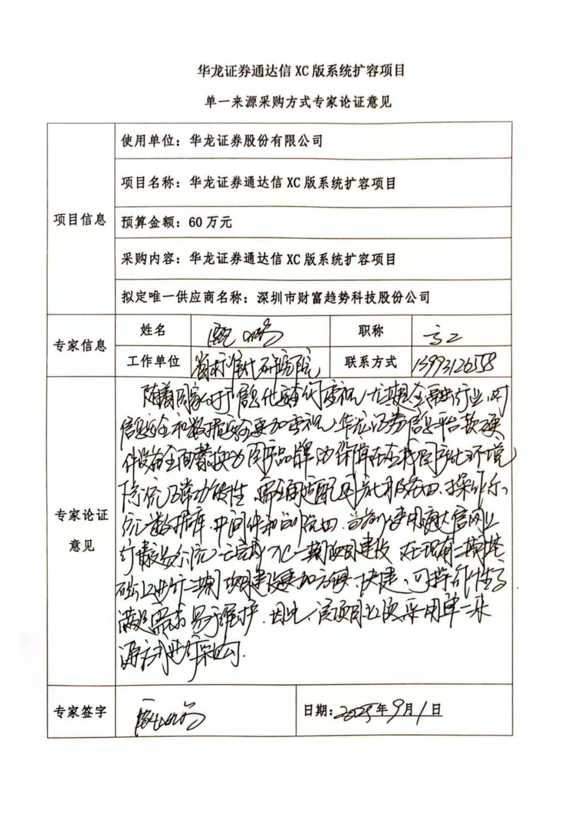 (九)任何供应商、单位或个人对该项目采用单一来源采购方式有异议的,可以在公示期内将书面意见反馈给华龙证券股份有限公司。