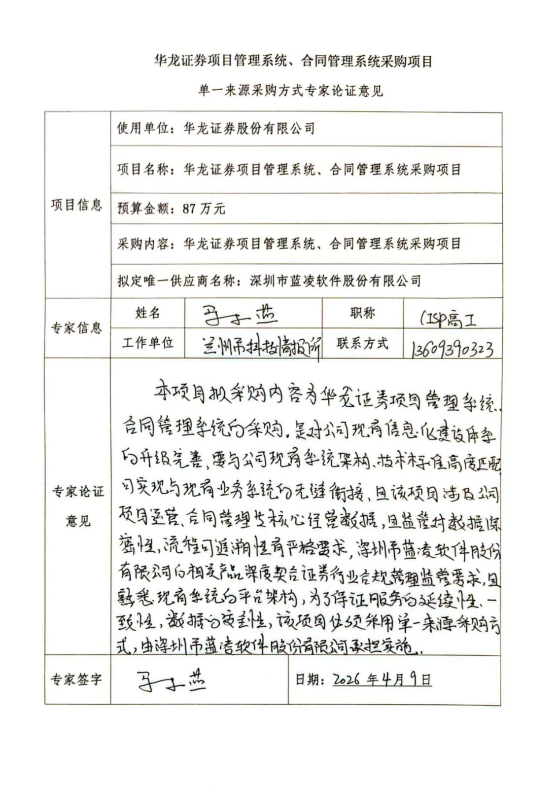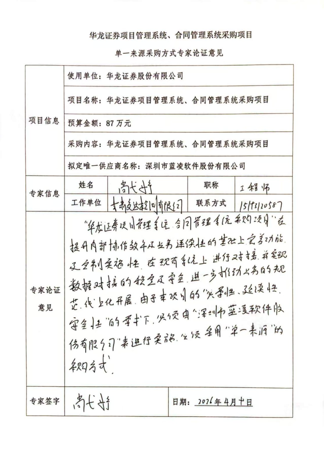 (十)任何供应商、单位或个人对该项目采用单一来源采购方式有异议的,可以在公示期内将书面意见反馈给华龙证券股份有限公司。