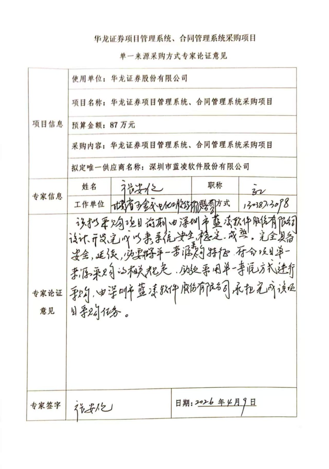 1、必要性:监管要求证券公司将项目管理、合同管理等核心经营环节的合规要求嵌入业务流程,实现标准化、线上化管控与全流程风险追溯,同时华龙证券业务规模持续扩大,项目与合同管理的规范化、流程化需求迫切,亟需搭建专业系统实现全生命周期线上管控,提升管理效率、降低合规风险,本项目的实施是落实监管要求、保障公司业务高效合规开展的必要举措,具有不可替代性。