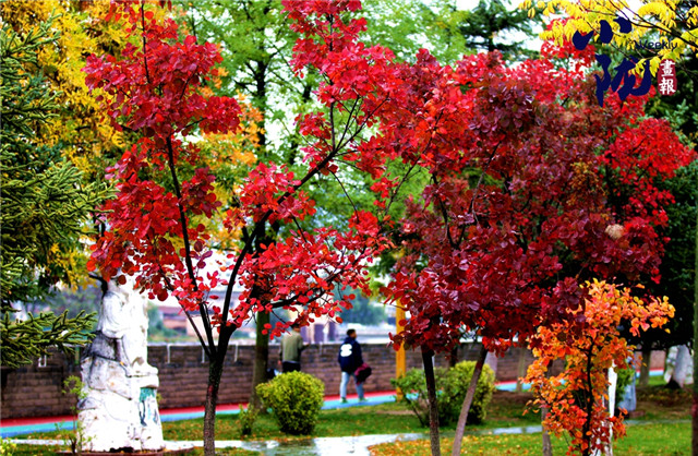 街道上,红叶满枝,热情似火,它们温柔地绽放,与周边的其他树种色彩相媲美,使得初冬的景致更加美丽动人。