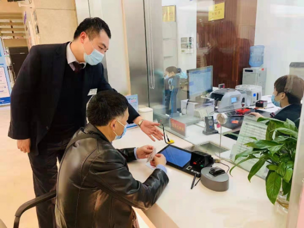 银行金融机构工作人员指导群众取款。(中国人民银行兰州中心支行供图)