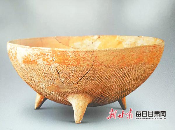 属于大地湾一期文化的宽带纹三足彩陶钵