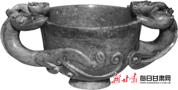 兰州博物馆馆藏的这件青玉双螭耳杯出土于兰州市七里河区晏家坪。