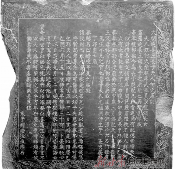 兰州市博物馆专家现场查看后,根据墓碑上的文字记载,确认该墓碑为“大明延长王长子夫人何氏”之碑。明延长王是明肃藩支系,碑为明肃藩第四世肃恭王朱贡(1487年受封,1536年殁)庶第六子延长王朱真滰嫡长子朱弼栋元配夫人何氏墓志。